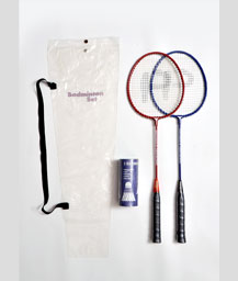 02 rackets with Header card,02 Nylon shuttles, packed in clear 1/2 size Pvc bag