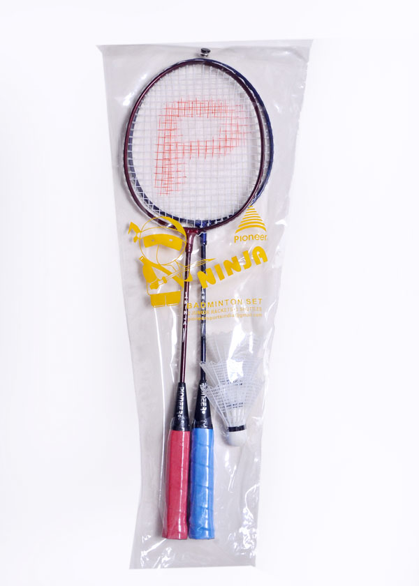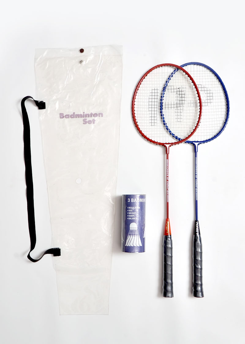 02 Rackets,3 shuttles in box,Packed in Clear printed Pvc bag with snap fastner and carry handle
